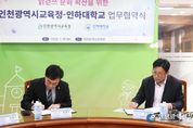[인천광역신문] 박진 기자 | 인천광역시교육청은 19일 인하대학교와 읽걷쓰 문화 확산 및 교육·연구 분야 교류 활성화를 위한 업무협약을 체결했다. 이번 협약은 읽걷쓰 교육에 대한 정보와 자원을 공유해 양 기관의 성장과 발전을 도모하고, 학술·교육 교류를 통하여 지역 기반 교육 문화 생태계 조성을 목표로 한다. 협약 내용은 ‘교육·연구 분야 교류 활성화를 통한 다양한 프로그램 발굴 및 공동 운영’, ‘기관별 운영 프로그램 연계 협력’, ‘지역 문제 해결 및 사회공헌 프로그램 공동 개발·운영’ 등이다. 이번 협약으로 인천시교육청과 인하대학교는 ‘읽걷쓰를 통한 일상 속 배움의 실현’이라는 교육 가치를 구체화했으며, 시민 참여형 읽걷쓰 문화 확산을 위해 기관 간 프로그램 공유와 운영을 펼치게 된다. 인천시교육청 관계자는 “이번 협약은 학교 교육과 지역 대학이 협력하여 인천의 교육 문화 수준을 한층 높이는 계기가 될 것”이라며 “읽걷쓰 문화가 시민의 일상 속에서 자연스럽게 확산될 수 있도록 다양한 프로그램을 추진하겠다”고 말했다. [뉴스출처 : 인천시교육청]