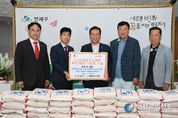 [인천광역신문] 관리자 기자 | 연제구는 9월 12일 사단법인 연제이웃사랑회로부터 추석 명절을 맞아 지역 내 저소득 세대를 위한 ‘사랑의 쌀 나눔'을 전달받았다. 이번 나눔은 한국부동산원이 후원하고 대구광역시공동모금회와 대구광역시사회복지협의회가 시행하는 '2025년 한국부동산원 추석명절맞이 사랑의 쌀 나눔 지원사업'의 일환으로 마련됐다. 이날 전달식에는 (사)연제이웃사랑회 강동완 이사장을 비롯해 한국부동산원 동부지사 관계자들이 함께 참석했다. 이번 나눔을 통해 전달된 양곡 10kg 100포는 동 행정복지센터를 통해 관내 저소득층 100세대에 고르게 배분될 예정이다. 주석수 연제구청장은 "민족 최대 명절인 추석을 앞두고 어려운 이웃들이 따뜻한 명절을 보내는 데 조금이나마 도움이 되길 바란다"라며, "지역사회 나눔 활동을 위해 도움을주시는 분들에게 항상 감사하다"라고 말했다. [뉴스출처 : 부산시연제구]
