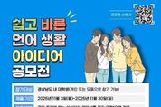 [인천광역신문] 관리자 기자 | 경상국립대학교(GNU·총장 권진회) 국어문화원(원장 정영훈 국어국문학과 교수)은 ‘경남 우리말 가꿈이 활동 지원 사업’의 일환으로 ‘쉽고 바른 언어생활 아이디어 공모전’을 개최한다. ‘경남 우리말 가꿈이 활동 지원 사업’은 우리말과 우리글을 바르게 사용하도록 알리는 언어문화 개선 운동으로, 경상국립대학교 국어문화원에서는 10년째 이 사업을 이어 오고 있다. 이번 공모전은, 경상남도 내 대학생을 대상으로 올바른 언어문화 확산에 기여할 수 있는 실용적·창의적인 아이디어를 발굴하고자 마련했다. 공모 주제는 ▲쉽고 바른 공공언어 사용 확산 방안 ▲공공기관 언어 개선 방안 ▲세대 간 원활한 소통을 위한 방안 등으로, 일상과 공공 영역에서 누구나 이해하기 쉬운 언어환경을 조성할 다양한 제안을 제출하면 된다. 제출 기간은 11월 3일부터 30일까지이다. 참가 희망자는 공모 주제에 맞는 아이디어 제안서를 작성해 전자우편(ckc@gnu.ac.kr)으로 제출하면 된다. 자세한 내용은 경상국립대학교 국어문화원 누리집에서 확인할 수 있다. 선정 결과는 12월 12일에 국어문화원 누리집에서 발표한다.