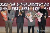 [인천광역신문] 박진 기자 | 울산 남구는 지난 23일 밤 보람컨벤션에서 남구 중소기업협의회 이종인 회장을 비롯한 100여 명의 중소기업인이 참석한 가운데 ‘2025년도 울산광역시 남구 기업인상’을 시상했다고 밝혔다. 올해 대상은 (주)디아이엔지니어링 정재훈 대표, 금상은 (주)서원인더스트리 김진후 대표, 은상은 (주)정백건설 안찬혁 대표가 각각 선정돼 수상했다. 남구 기업인상은 기술개발을 통해 우수한 경영성과와 함께 지역경제 발전과 활성화에 기여한 우수 중소기업을 발굴하고 격려하기 위해 매년 시상하고 있다. 기업 건실도와 지역경제기여도 등 4개 분야 22개 항목에서 높은 점수를 받은 기업인이 수상 대상이며 수상자에게는 중소기업 경영안정자금 융자 시 우선 지원 등 인센티브가 부여된다. 서동욱 남구청장은 “올 한 해 지역 경제를 이끌어온 기업인들의 노력으로 이뤄낸 성과는 울산 경제의 희망이자 원동력이다”라며 “이번 시상이 기업인들의 노고를 격려하고 앞으로의 도약을 응원하는 뜻깊은 자리가 되기를 바란다”고 말했다. [뉴스출처 : 울산시남구]