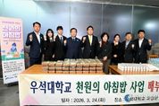 [인천광역신문] 관리자 기자 | 완주군이 24일 우석대학교 교양관에서 2026년 ‘천 원의 아침밥’ 사업의 시작을 알리는 행사를 열고 올해 본격적인 사업 추진에 나섰다. 이날 행사에는 유희태 완주군수와 박노준 우석대학교 총장, 이순덕 군의원, 김정은 사회적협동조합 양지뜰 대표 등이 참여해 바쁜 학업으로 아침 식사를 거르는 대학생들에게 로컬푸드 식재료로 만든 식사를 직접 배식하며 따뜻한 격려를 건넸다. 군은 학생들의 높은 호응을 반영해 올해 운영 규모를 작년보다 대폭 키웠다. 지난해 기준 43일이었던 일수를 올해 80일로 2배 가까이 확대해 운영한다. 이를 통해 더 많은 학생이 학기 중 꾸준히 양질의 아침 식사를 제공받을 수 있게 됐다. 제공하는 메뉴 역시 학생들의 목소리를 적극적으로 반영했다. 지역산 쌀을 활용한 다양한 덮밥류와 완주로컬푸드협동조합(이사장 권승환)과 재단법인 완주공공급식지원센터를 통해 공급받은 신선한 제철 과일 등 영양가 높은 간편식 식단으로 구성해 운영할 예정이다. 유희태 완주군수는 “천 원의 아침밥 사업은 청년들이 건강하게 미래를 준비하도록