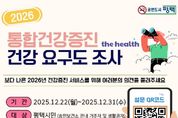 [인천광역신문] 박진 기자 | 평택시 송탄보건소는 2026년 통합건강증진사업 계획수립을 위해 지역주민을 대상으로 건강요구도 설문조사를 진행한다고 밝혔다. 이번 조사는 지역사회 주민들의 만성질환 관리, 신체활동, 비만 예방관리 등 건강 관련 요구를 파악하여, 2026년 지역사회 통합건강증진사업 계획수립에 반영하기 위해 마련됐다. 설문 내용은 △보건소 건강증진사업에 대한 참여 경험 및 인식도 △건강증진을 위해 가장 필요하다고 생각하는 우선 사업 △생애주기별 보건사업 대상 우선순위 등 총 10개 문항으로 구성됐으며, 설문 결과는 2026년 통합건강증진사업의 세부 사업 발굴과 우선순위 설정을 위한 기초자료로 활용될 예정이다. 설문조사는 평택시와 보건소 누리집과 송탄보건소 카카오톡 채널(송탄보건소 건강정보톡!) 등에 게시된 정보무늬(QR코드)를 통해 온라인으로 진행되며, 설문조사에 참여한 주민을 대상으로 추첨을 통해 모바일 상품권을 제공할 예정이다. 송탄보건소 조민수 소장은 “이번 건강요구도 조사는 주민의 목소리를 직접 듣고 지역에 맞는 건강증진사업을 추진하기 위한 중요한 과정”이라며 “시민들의 적극적인 참