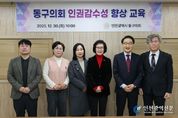 [인천광역신문] 박진 기자 | 인천 동구의회는 지난 30일 의회 세미나실에서 구의회 의원과 의회사무과 공무원을 대상으로 인권감수성 향상 교육을 실시했다. 이번 교육은 조례 제·개정과 예산 심의, 민원 처리 과정 등에서 주민의 권리를 보다 세밀하게 살필 수 있는 인권감수성을 높이고자 마련됐다. 교육은 인권 전문 강사인 김영길 박사를 초빙해 ‘인권의 이해와 유형’을 주제로 진행됐다. 또한 ‘나는 누구인가’라는 질문을 통해 개인의 정체성과 가치관을 성찰하고, 의회가 다루는 정책 결정이 주민의 삶과 권리에 미치는 영향을 함께 고민하는 시간을 가졌다. 유옥분 의장은 “인권은 별도의 분야가 아니라 의회가 다루는 모든 정책과 행정의 기본 기준”이라며 “이번 교육을 계기로 동구의회가 주민의 입장에서 한 번 더 생각할 수 있는 인권 중심 의정을 실천해 나가겠다”고 말했다. [뉴스출처 : 동구의회]