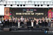 [인천광역신문] 관리자 기자 | 마포구는 ‘제18회 마포나루 새우젓축제’의 마지막 날인 10월 19일 오후 월드컵공원 평화의광장에서 ‘제32회 마포구민의 날’ 기념행사를 열고, 지역사회 발전을 위해 헌신한 구민들의 노고에 감사의 마음을 전했다. ‘제32회 마포구민의 날’을 축하하기 위해 현장에는 박강수 마포구청장과 국회의원 등 내빈 약 2천여 명이 참석해 자리를 빛냈다. 이날 기념식에서 마포구 구민상을 받게 된 구민은 총 20명으로, 시상 부문은 문화상(김기중, 최재홍), 체육상(남현, 홍금순, 황재호), 안전·환경상(김기덕, 김옥자, 어숙희), 교육상(박영희, 홍정연, 마포청소년문화의집), 효행·선행상(김경원, 김두경, 김점동), 봉사·기부상(윤남식, 이병석, 전정미), 지역발전상(권경환, 이석구, 조규식)이다. 구민상은 박강수 마포구청장이 직접 시상했으며, 행사장을 가득 메운 참석자들은 수상자들의 이름이 호명될 때마다 박수로 축하를 전했다. 또한 마포구를 빛낸 자랑스러운 수상자들을 위해 마포구립합창단의 축하 공연이 이어졌다. 박강수 마포구청장은 “구민 여러분 한 분 한 분의 헌신