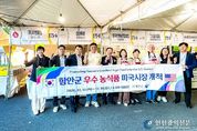 [인천광역신문] 관리자 기자 | 함안군은 지난 16일부터 19일까지 4일간 미국 로스앤젤레스 한인타운 내 서울국제공원에서 열린 제52회 로스앤젤레스 한인축제 농수산박람회에 참가해 지역 우수 농식품을 선보였다고 밝혔다. 이번 축제는 ‘경계선을 넘어서’를 주제로 개최됐으며, 1974년 처음 시작해 50년 이상의 역사와 전통을 가진 미국 서부 지역 최대 규모 한인 축제다. 매년 30만 명 이상이 방문하는 대표 행사로, 올해는 약 200여 개의 홍보·전시 부스가 운영됐다. 경상남도에서는 함안군을 포함해 6개 시군이 참여해 지역 농특산물 홍보에 힘을 보탰다. 조근제 함안군수는 축제 기간 개막 행사와 농수산박람회 판촉 행사에 참석했으며, 현지 관련 기관을 방문하고 수출 상담을 진행하는 등 북미 시장 개척 활동을 펼쳤다. 함안군은 이번 박람회에서 수박 가공품, 단감 가공품, 전통 장류, 곡류 등 지역에서 생산한 17종의 농식품을 전시했다. 미국 현지 한인 소비자들에게 친숙한 품목과 수출 유망 농식품으로 구성해 판촉 행사를 진행했으며, 현지 바이어를 대상으로 수출 협력 확대를 위한 상담도 함께 진행했다. 조 군수