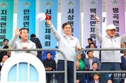 [인천광역신문] 관리자 기자 | 함양군은 군민의 소통과 화합, 건강 증진의 한마당인 ‘제64회 함양군민체육대회’가 지난 18일 함양공설운동장과 종목별 경기장에서 뜨거운 열기 속에 성공적으로 마무리됐다고 밝혔다. 함양군체육회가 주최하고 회원 종목단체에서 주관한 이번 대회는 11개 읍면에서 3,000여 명의 군민이 참가해 읍면 대항전 10개 종목과 클럽대항전 및 참여 경기 5개 종목에서 실력을 겨루며, 세대와 지역을 아우르는 소통과 화합의 장을 이뤘다. 대회는 11개 읍면이 저마다 준비한 개성 넘치는 입장식으로 막이 올랐다. 이어 전날(17일) 천령봉에서 채화된 성화는 군청 광장에 안치됐다가 대회 당일 공설운동장에 도착했으며, 강병구·이장겸 선수의 점화로 함양의 뜨거운 열정이 타올랐다. 성화 봉송은 ‘함양 정착, 도민체전 성적, 함양 축구 미래, 체육 원로, 축제 위원장’ 등 5대 테마로 구성되어 의미를 더했다. 개회식에서는 40명으로 구성된 함양군 라인댄스팀의 축하공연이 분위기를 돋우었고, 개회 선언을 시작으로 안병명 체육회장의 대회사, 진병영 함양군수의 격려사, 김윤택 의장 등의 축사와 양재생 부산
