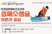 [인천광역신문] 최예준 기자 | 연수구는 지역 주민과 만성질환자의 건강관리 능력 향상과 응급상황 대처능력 강화를 위해 다음 달 10일 오후 2시 송도건강생활지원센터에서 ‘만성질환 예방 건강강좌–심폐소생술 교육’을 실시한다. 이번 교육은 송도건강생활지원센터 2층 보건교육실에서 진행되며, 만성질환자와 주민 30명을 대상으로 진행한다. 교육은 인천소방본부 송도소방서와 함께 ▲심폐소생술의 중요성, ▲증상별 응급상황 대처법, ▲심폐소생술 실습 등 실질적인 내용으로 구성됐다. 교육 신청은 이달 22일부터 11월 5일까지 선착순으로 진행되며, 연수구청 누리집 ‘연수문화포털’에서 인터넷 접수하거나 전화로 신청할 수 있다. 송도건강생활지원센터 관계자는 “심폐소생술은 위급한 순간 생명을 구할 수 있는 중요한 기술”이라며, “이번 교육이 응급상황에 주민들이 침착하고 정확하게 대처할 수 있는 역량을 높이는 계기가 되길 바란다.”라고 말했다. [뉴스출처 : 인천시연수구]