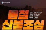 [인천광역신문] 박진 기자 | 모두가 노력하면 막을 수 있는 재해, 산불 봄철 산불조심기간: 1월 20일~5월 15일 산불을 발견했다면? 즉시 신고하세요! - 산림청 산불상황실 ☎042-481-4119 - 소방서 ☎119 - 경찰서 ☎112 [뉴스출처 : 문화체육관광부]
