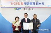 [인천광역신문] 최예준 기자 | 여주시는 지난 2일 6‧25전쟁 무공훈장 전수식을 개최하고, 故이석만 상사의 공적을 기리며 화랑무공훈장을 유가족에게 전수했다. 이번 전수식은 국방부가 추진 중인 ‘6‧25전쟁 무공훈장 찾아주기 사업’의 일환으로, 전쟁 당시 서훈이 결정됐으나 긴박한 전투 상황 등으로 인해 전달되지 못한 훈장을 여주시와의 협업을 통해 고인의 무공훈장 수훈 사실을 재확인하고, 오랜 기간 훈장을 받지 못한 유가족에게 전달하기 위해 마련됐다. 이날 행사에는 고인의 자녀인 이흥원씨가 참석해 훈장을 대신 수여받았으며, 가족과 함께 고인의 숭고한 희생과 헌신을 기리는 뜻깊은 시간을 가졌다. 故이석만 상사는 1948년 12월 입대해 1951년 4월에 제대했다. 특히, 6‧25전쟁 당시 대구지구 팔공산 전투에서 수공을 세우는 등 국가 수호에 크게 기여한 공로가 인정됐다. 여주시는 이번 전수식을 통해 국가를 위해 헌신한 참전유공자의 명예를 되찾고, 그 숭고한 희생정신을 지역사회에 널리 알리는 계기를 마련했다. 이충우 여주시장은 “국가를 위해 헌신하신 분의 공훈을 늦게나마 기리고 유가족께 훈