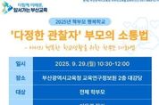 [인천광역신문] 관리자 기자 | 부산광역시교육청은 학부모의 올바른 자녀 교육관 정립과 부산교육 정책 이해를 돕기 위해 ‘9월 학부모 행복학교’를 운영한다고 밝혔다. 이번 학부모 행복학교는 ‘다정한 관찰자, 부모의 소통법 ― 아이의 행복한 학교생활을 위한 학부모 대화법’을 주제로, 자녀를 간섭하기보다 존중하며 지켜보는 부모의 태도를 통해 아이의 자존감과 학습 동기를 높이는 방안을 함께 탐색하는 내용으로 마련됐다. 강의를 맡은 이은경 작가는 ‘나는 다정한 관찰자가 되기로 했다’ 등 다수의 저서를 집필한 자녀교육 전문가이다. 초등교사 출신으로 현장에서 활동한 경험을 바탕으로 부모와 아이가 함께 성장하는 교육법을 제시하며, 학부모 교육 강연과 방송 등을 통해 활발히 활동하고 있다. 9월 학부모 행복학교는 오는 29일 오전 10시 30부터 12시까지 부산진구 양정동 교육연구정보원 2층 대강당에서 진행된다. 참가 희망자는 오는 8일 오전 10시부터 학부모지원포털을 통해 신청하면 되고 선착순으로 마감된다. 자세한 사항은 학부모지원포털에서 확인할 수 있다. 김석준 교육감은 “