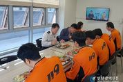 [인천광역신문] 관리자 기자 | 김문용 대전소방본부장은 21일 둔산소방서 태평119안전센터를 방문해 현장 대원들과 함께 구내식당에서 소통의 시간을 가졌다. 이번 방문은 현장 근무 대원들이 이용하는 구내식당의 운영 현황을 점검하고, 일선에서 활동 중인 소방대원들의 애로사항과 건의사항을 직접 청취하기 위해 마련됐다. 이날 김 본부장은 식사와 함께 식단 구성, 위생 관리, 시설 환경 등 급식 운영 전반에 대한 의견을 나누며, 현장의 목소리를 세심하게 경청했다. 김문용 본부장은 “건강하고 균형 잡힌 식사는 소방대원의 체력 유지와 안전한 현장 활동의 기본”이라며 “대원들이 만족할 수 있는 급식 환경 조성을 위해 현장의 의견을 적극 반영해 나가겠다”라고 말했다. 이어 “여러분의 목소리가 조직 발전의 원동력”이라며 “앞으로도 지속적인 소통을 통해 근무 여건과 복지 향상을 위한 노력을 이어갈 것”이라고 덧붙였다. [뉴스출처 : 대전소방본부]