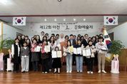 [인천광역신문] 관리자 기자 | 재단법인 아천문화교류재단(ACEF)이 주최-주관한 '제12회 아천효문화예술제’가 11월 1일 오후3시 아천문화교류센터에서 시상식이 개최됐다. 이날 행사에는 부모사랑 나라사랑의 올바른 가치관을 심어주기 위해 문화예술 부문의 우수한 인재들을 발굴 시상하고 올해로 12회를 맞았다. 시상식은 이승훈의 사회로 식전행사에 노 오케스트라의 연주를 시작으로 개회식, 국민의례등의 순서로 진행되었으며, 재단법인 아천문화교류재단 이사장인 성민스님은 인사말을 통하여 로마 제국시대의 철학자, 정치가, 작가, 그리고 스토아 철학의 대표인물인 루키우스 안나이우스 세네카의 말을 빌어서 인생은 철학이고, 철학은 삶이라고 하면서 평안속에서 행동으로 옮기는 삶이 진정으로 미래를 꿈꾸는 삶이라고 이야기하면서 수상자분들의 축하의 말씀과 더블어 그들의 삶이 희망과 꿈이 넘치기를 믿는다고 피력했다. 수상과 관련, 최고상인 국회의장상에는 고봉국님, 특별상인 문화체육관광부장관상에는 목포애향중학교 송은유학생, 학생부종합대상에는 한밭여자중학교 이인혜학생, 서울특별시장상에는 정호겸, 권수지님. 경기도지사상에는 박상우, 윤세화님, 인천시