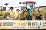 [인천광역신문] 관리자 기자 | 안성시농업기술센터는 9월 29일, 안성시 지역특화 벼 품종인 ‘수찬미’의 벼 베기 행사를 성황리에 개최했다. 이번 행사는 2025년부터 본격 보급된 ‘수찬미’를 널리 알리고, 기존 외래품종 ‘추청’을 대체할 대안으로 홍보하기 위해 마련됐다. 이번 행사에는 김보라 안성시장을 비롯해 안성시 및 경기도농업기술원 관계 공무원, 농협중앙회 안성시지부장, 지역농협 조합장 및 안성마춤농협 관계관, 안성시 농촌지도자 및 쌀연구회 회원, 벼 재배 농업인 등이 참석했다. 이날 김보라 시장은 직접 콤바인에 탑승해 수확 시연에 참여하며 농업인들의 노고를 격려하고 수확의 기쁨을 함께 나눴다. ‘수찬미’는 경기도농업기술원이 개발한 중생종 중간찰 벼로, 보람찰과 밀키퀸을 교배해 만들어졌다. 밥맛과 식감이 뛰어나고 수발아율이 낮아 기후변화에 대한 적응력도 높다. 특히 지난 55년간 안성지역 대표 품종으로 널리 재배되고 있는 추청벼가 2027년부터 보급종 공급이 중단될 예정이어서, ‘수찬미’가 안성시의 대체 품종으로 주목받고 있다. 김보라 시장은 “수찬미는 올해부터 500ha로 본격 도입되어 내년에는 재배면적
