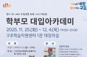 [인천광역신문] 최훈 기자 | 구로구가 예비 수험생 학부모를 대상으로 ‘2027학년도 학부모 대입 아카데미’를 운영한다. 구는 변화하는 대입 제도와 입시 환경 속에서 학부모가 정확한 정보를 이해하고, 자녀의 진로·진학을 체계적으로 지원할 수 있도록 매년 학부모 대입 아카데미를 운영하고 있다. 교육은 구로구 관내 예비 수험생(중학교 3학년∼고등학교 2학년)을 둔 학부모 50명을 대상으로 구로학습지원센터 1관 대강의실에서 진행된다. 이번 프로그램은 △11월 25일 ‘고교학점제 대비 및 2028학년도 대입 제도 분석’ △11월 27일 ‘학종 성공을 위한 과목 선택과 내신 1등급 만들기 공부 비법’ △12월 2일 ‘2027학년도 대입 전형의 이해와 수시모집 성공전략 세우기’ △12월 4일 ‘주제탐구활동을 하면 학생부가 왜 특별해 보일까?’ 등 총 4회에 걸쳐 매회 오후 7시부터 9시까지 2시간 동안 이어진다. 강의는 진학 멘토 ‘신의 한 수’ 입시전략연구소 김용택 대표가 나서 학부모가 자녀와 함께 실천할 수 있는 현실적인 진학 지도 방안과 대입 준비에 필요한 핵심 정보를 전달할 예정이다. 참여