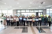 [인천광역신문] 관리자 기자 | 울산광역시교육청은 30일 오전 8시부터 청사 정문과 후문, 1층 중앙 현관에서 전 직원을 대상으로 ‘환경친화적 청사 만들기 홍보 활동(캠페인)’을 펼쳤다. 이번 행사는 기후 위기에 대응해 지속 가능한 미래를 실현하는 교육청의 친환경 정책에 모든 직원이 함께 참여하도록 독려하고, 일상 속 친환경 문화를 확산하고자 마련됐다. 행사에는 천창수 교육감을 비롯해 염기성 부교육감, 각 국장과 직원들이 함께했다. 참여자들은 폐지를 재활용해 직접 제작한 손팻말을 들고 ‘차량 5부제 참여’와 ‘일회용 플라스틱 사용 근절’ 등 두 가지 주요 실천 과제를 알렸다. 또한 친환경 홍보영상을 송출해 기후 위기 심각성을 공유했다. 출근하는 직원들에게 ‘차량 5부제 참여’, ‘일회용품 사용 자제’ 등의 문구가 적힌 친환경 간식을 나눠주며, 생활 속 작은 실천이 큰 변화를 만든다는 메시지를 전달했다. 앞서 교육청은 지난 9월 1일부터 5일까지 전 직원을 대상으로 ‘차량 5부제 참여 활성화 공모’를 진행해 우수 제안 작품을 선정, 게시하며 직원들의 적극적인 관심과 참여를 높