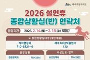 [인천광역신문] 관리자 기자 | 제주특별자치도는 13일 진명기 행정부지사 주재로 ‘2026년 설연휴 종합대책 보고회’를 열고 ‘민생에 온기를, 안전에 안심을 더하는 설명절’을 주제로 분야별 세부 추진계획을 점검했다. 이날 보고회에는 정무부지사를 비롯해 안전건강실장, 특별자치행정국장, 행정시 부시장 등 상황반별 실국단장 20여 명을 포함한 130여명의 간부공무원이 참석했다. 제주도는 14일부터 18일까지 특별자치행정국장을 총괄로, 총 7개반 1,491명을 투입해 종합상황실을 운영한다. 도 7개반 366명, 제주시 7개반 625명, 서귀포시 9개반 500명이 참여하며, 하루 평균 298명이 현장에서 비상근무를 선다. 제주 120 만덕콜센터와 당직 근무자가 도민과 관광객 불편신고를 접수한다. 지난 10일 수립해 추진 중인 설연휴 종합대책은 ▲민생경제 안정 ▲도민안전 확보 ▲교통․관광 편의 ▲도민불편 해소 ▲나눔실천 등 5개 분야로 구성됐다. 물가안정 및 소비촉진을 위해 탐나는전 적립률 상향과 전통시장 온누리상품권 환급행사 등 소비지원 대책을 추진한다. 탐나는전 적립률을 2월 한 달간 20%