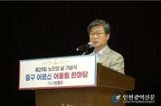 [인천광역신문] 관리자 기자 | 서울 중구가 제29회 노인의 날(10월 2일)을 기념해 지난 2일 중구 구민회관 대강당에서 기념식과 함께 어르신 어울림 한마당을 열었다. 이날 행사에는 어르신과 내빈 등 500여 명이 참석해 어르신들에 대한 노고에 존경과 감사를 표했다. 1부에서는 노인 복지와 지역 발전을 위해 헌신하신 65세 이상 모범어르신 3명과 노인복지 기여자 9명, 기여 단체 1곳에 표창이 수여됐다. 2부 행사에서는 초대가수 축하공연과 어르신 장기자랑이 펼쳐졌다. 어르신으로 구성된 11팀이 무대에 올라 노래와 악기 연주 실력을 뽐내며 흥겨운 시간을 만들었다. 김 구청장도 '고맙소'라는 노래를 불러 어르신들의 호응을 얻었다. 행사장 로비에는 영양 건강 체험 부스가 마련되어 어르신들이 드신 식사의 칼로리와 나트륨양 등을 직접 계산해보고 균형잡힌 식사법에 대한 상담도 받을수 있었으며, 추척사진관 부스에서는 교복을 입고 사진을 찍으며 옛 추억을 떠올렸다. 행사에는 한국삭도공업주식회사, 대신자산신탁, 한마음라이온스, 중구자원봉사센터를 비롯한 여러 업체와 기관이 경품, 기념품, 간식 등을 후원해 더욱 풍