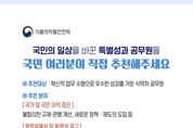 [인천광역신문] 박진 기자 | 식품의약품안전처는 국민이 체감하는 탁월한 성과를 창출한 공무원을 국민이 직접 추천해 포상하는 ‘국민추천제’를 1월 20일부터 운영한다고 밝혔다. ‘국민추천제’는 ‘인사는 공정하게, 신상필벌은 확실하게’라는 국민주권정부의 국정철학을 바탕으로 공직사회의 성과 보상 체계를 혁신하고자 올해부터 범정부적으로 도입한 '공무원 특별성과 포상금 제도'의 일환이다. 소관 업무 분야에서 통상적인 직무수준을 뛰어넘는 특별한 성과를 달성한 공무원에게는 기관장 표창과 함께 1인당 최대 3천만원 이내의 파격적인 수준의 포상금을 지급하는 한편, 기관 누리집과 SNS 등을 통해 특별성과 사례를 국민에게 알리고 성과 중심의 공직문화를 조성한다. 1월 20일부터 국민 누구나 식약처 소속 공무원 중 우수한 성과를 창출한 공무원을 365일 언제든지 추천할 수 있다. 오유경 식약처장은 “공무원이 국가와 국민의 이익을 증진하고 공공의 안전과 질서 유지에 앞장선 성과를 체감하는 사람은 국민”이라며, “특별성과 포상금 제도에 국민추천 방식을 도입함으로써 국민이 체감하는 성과가 정당하게 평가받고 보상받는 성과 중