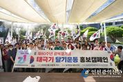 [인천광역신문] 관리자 기자 | 한국자유총연맹 남구지회는 지난 8월 14일 남구청 구민 광장에서 제80주년 광복절 맞이 태극기 홍보캠페인 활동을 펼쳤다. 무더운 날씨 속에서도 한국자유총연맹 남구지회 회원들과 오은택 구청장, 서성부 구의장, 시, 구의원 등 50여 명이 참여하여 나라를 사랑하는 마음을 담아 주민들에게 태극기 200개를 무료로 배부했다. 배동석 지회장은 “이번 행사로 광복절의 의미를 다시 한번 되새기며 나라의 상징인 태극기를 소중히 여기고 각 가정에서 국경일마다 태극기를 소중히 여기고, 가정마다 태극기를 게양하는 분위기가 조성되기를 바란다”고 말했다. 오은택 구청장은 축사를 통해 “ 우리 구민들이 태극기 달기 운동을 통해 나라 사랑의 계기가 되기를 바라며, 이번 행사를 주관한 자유총연맹 남구지회에 고마움을 표한다” 고 감사의 인사를 전했다. [뉴스출처 : 부산시남구]