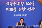 [인천광역신문] 관리자 기자 | 이재명 대통령은 11일 "오늘부터 임기 마지막 날까지 '국민이 주인인 나라, 함께 행복한 대한민국'을 만드는 길에 매진하겠다"고 밝혔다. 이 대통령은 이날 오전 10시 청와대 영빈관에서 '회복을 위한 100일, 미래를 위한 성장'을 주제로 열린 취임 100일 기자회견에서 "앞으로 남은 4년 9개월은 '도약과 성장의 시간'"이라며 이같이 말했다. 이 대통령은 "인수위도 없이 출범한 정부가 이제 본격적인 출발선에 섰다"며 "우리 경제가 다시 성장하고, 대한민국이 힘차게 도약할 수 있도록 총력을 기울이겠다"고 밝혔다. 이어 "세계를 이끄는 혁신경제로 '진짜 성장'을 추진하고, 성장의 결실을 국민 모두가 나누는 '모두의 성장'을 이뤄내겠다"며 "기본이 튼튼한 사회를 구축해 국민의 삶도 빈틈없이 지켜내겠다"고 말했다. 이 대통령은 "당당한 실용외교로 세계 속에서 우뚝 서고 국민의 평화로운 일상을 지켜내겠다"며 "모든 국민을 아우르고 섬기는 '모두의 대통령'이 되겠다는 약속에 따라 통합의 정치와 통합의 국정으로 나아가겠다"고 밝혔다. 또 "외교 정상화에 만족하지 않
