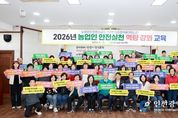 [인천광역신문] 관리자 기자 | 의령군은 지난 3월 31일 농업기술센터 3층 교육장에서 한국생활개선의령군연합회 회원 46명을 대상으로 ‘농업인 안전리더 육성 교육’을 실시했다고 밝혔다. 이번 교육은 농촌진흥청 ‘농업인 안전실천 역량강화 교육’의 일환으로, 경상남도농업기술원·의령소방서·의령군농업기술센터 등 분야별 전문가가 참여해 농작업 재해 예방, 심폐소생술(CPR) 및 응급처치, 보호구 착용법 등을 실습 중심으로 진행됐다. 교육에 참여한 회원들은 지역 농업인의 생명과 안전을 지키는 안전리더로서 역할 수행을 다짐했다. 농업기술센터 관계자는 “농업은 재해율이 높은 분야인 만큼 농업인 스스로의 안전의식이 중요하다”며 “앞으로도 안전한 영농환경 조성을 위해 지속적인 교육과 지원을 이어가겠다”고 말했다. 한편 의령군은 ‘농업인 안전 365 캠페인’도 병행 추진 중이며, 이번에 양성된 안전리더들은 여름철 온열질환 예방 활동과 함께 마을별 안전수칙 전파 및 현장 지도를 맡을 예정이다. [뉴스출처 : 경상남도 의령군]