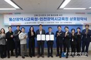 [인천광역신문] 관리자 기자 | 울산광역시교육청과 인천광역시교육청이 4일 오후 4시 울산교육청 접견실에서 교육·연구 분야 교류 활성화를 내용으로 하는 업무협약을 했다. 이번 협약은 두 교육청이 상호 신뢰와 협력을 바탕으로 독서·인문교육과 연구 분야 발전을 도모하고, 지역 문제 해결과 사회 공헌을 위한 공동 프로그램 개발을 함께 추진하고자 마련됐다. 두 교육청은 이번 협약으로 교육·연구 분야 교류 활성화를 위한 다양한 프로그램을 공동 운영하고, 상호 연계로 교육 발전을 꾀한다는 방침이다. 또한 지역사회의 문제해결과 공공 가치를 실현하는 사회 공헌 프로그램을 공동 개발하고 운영하는 데 협력하기로 했다. 특히, 울산광역시교육청의 대표 독서인문교육 프로그램 ‘책크인’ 과 인천광역시교육청의 대표 독서교육 프로그램 ‘읽걷쓰’를 연계해 두 기관의 우수 교육 자료(콘텐츠)를 상호 공유하고 발전시킬 계획이다. ‘책크인’은 ‘책으로 크는 우리 아이’와 ‘독서의 세계로 체크인(check-in)한다’는 의미를 담아 학생의 성장과 독서 문화 확산을 목표로 한다. ‘읽걷쓰’는 읽기(문해력), 걷기(