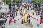 [인천광역신문] 관리자 기자 | ‘K-축제’로 자리매김한 정조대왕 능행차 공동재현이 28일 수원에서 열렸다. 오전에 세차게 비가 내렸지만 수원종합운동장에서 본격적인 행렬이 시작된 오후에는 비가 그쳐 수많은 관람객이 정조대왕 능행차 재현을 함께 즐겼다. 정조대왕 능행차 재현 행렬(수원 구간)은 오전 노송지대(1구간)에서 시작됐다. 오후 3시 30분 수원종합운동장에서 행렬이 출발했고, 종합운동장에서 행궁광장에 이르는 길 양쪽은 관람객들로 가득했다. 시민 2000여 명과 말 70여 필이 행렬에 참여했다. 행궁광장에서 정조대왕이 입궁하는 퍼포먼스로 능행차 공동재현은 마무리됐다. 행궁광장에서는 국제자매도시 공연단의 축하공연, 정조대왕 행차를 환영하는 축하행렬인 수원화성 퍼레이드, 정조대왕 능행차 재현·입궁 퍼포먼스, KBS 국악관현악단과 국악인 김영임, 유태평양의 협연 콘서트가 이어졌다. 이재준 수원시장, 이재식 수원시의회 의장, 수원 지역 국회의원들도 행렬에 참여하며 시민들과 함께했다. 행궁광장에서 시민들을 만난 이재준 시장은 “수많은 시민이 함께 즐긴 정조대왕 능행차 공동재현은 정조대왕이 꿈