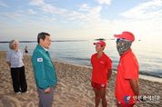 [인천광역신문] 관리자 기자 | 김홍규 강릉시장은 24일 오전 6시 경포해수욕장을 방문해 일선에서 해수욕장을 위해 고생하는 청소인력과 수상인명구조요원을 격려하고 관련 시설을 점검했다. 특히 김홍규 시장은 현장의 안전시설을 점검하며, 근무자들의 애로사항을 파악하고자 직접 비치클리너를 운전해 해변 청소 활동에 참여하는 모습도 보였다. 한편, 오는 8월 17일까지 운영되는 해수욕장에는 안전 분야 126명, 청소 분야 76명 등 1일 총 257명의 인력을 배치하고, 24시간 종합상황실을 운영하는 등 시민과 관광객을 위한 안전한 해수욕장 환경 조성에 힘쓰고 있다. 강릉시는 경포해수욕장을 포함해 올해 총 18개 해수욕장을 운영하며, 경포해수욕장은 6월 28일부터 8월 17일까지, 나머지 읍면동 해수욕장은 7월 4일부터 8월 17일까지 운영한다. 해수욕장 수영가능시간은 오전 9시부터 오후 6시까지이며, 시민과 관광객들이 무더위를 해소할 수 있도록 경포해수욕장에 한 해 7월 26일부터 8월 9일 기간동안 오후 6시부터 9시까지 야간개장한다. [뉴스출처 : 강원도강릉시]