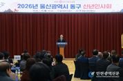 [인천광역신문] 박진 기자 | 울산 동구는 1월 15일 오전 10시 30분 동구청 2층 대강당에서 2026년 울산광역시 동구 신년 인사회를 개최했다. 이번 신년 인사회는 동울산청년회의소(회장 전종현)가 주관한 것으로 김종훈 동구청장을 비롯한 동구 지역 각급 기관·단체장 200여 명이 참석하여, 구정 발전을 위한 덕담과 화합의 시간을 나눴다. 이날 행사에서는 ‘AI에게 동구의 미래를 묻다’라는 주제로 인공지능 프로그램을 활용해 동구청 직원들이 직접 제작한, ‘다시 뛰는 심장, 2040 울산 동구’ 영상을 함께 시청하며 동구의 미래를 그려보는 흥미로운 시간을 마련했다. 김종훈 구청장은 지난 3년 반의 시간 동안 ‘더 잘 사는 동구’를 목표로, 구청과 각급 기관단체가 함께 동구 주민의 더 나은 삶을 위해 힘써 왔다”라며 각급 기관·단체장들에게 감사의 인사를 전했다. 또한 “앞으로 산업과 도시의 구조 자체가 급변하는 미래를 맞이하여 한 단계 더 도약하고 성장하는 동구를 만들기 위해 기관·단체·기업이 손잡고 미래의 힘찬 여정을 함께해 주시길 바란다”라고 말했다. [뉴스출처 : 울산시 동구]