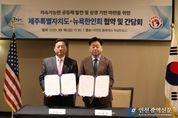 [인천광역신문] 관리자 기자 | 제주특별자치도가 미국 동부 50만 한인을 대표하는 뉴욕한인회와 손잡고 경제·관광·문화·교육 분야 글로벌 협력 네트워크를 본격 가동한다. 제주도는 19일 오후 4시(현지시간) 미국 워싱턴DC 소재 하얏트 플레이스 호텔에서 뉴욕한인회와 상생 교류발전 업무협약을 체결했다. 뉴욕한인회는 뉴욕 대도시권과 뉴저지, 코네티컷 일부 지역 약 50만 한인을 대표하는 비영리단체로 한인 권익보호와 문화·경제·교육·복지사업, 이민자 지원 등을 담당한다. 제주도가 미주지역 한인회와 협약을 맺은 것은 지난해 10월 미주한인회총연합회에 이어 두 번째다. 협약식에는 오영훈 지사와 이명석 뉴욕한인회장을 비롯한 양측 관계자 20여 명이 참석해 다양한 분야에 대한 구체적인 협력방안을 논의했다. 주요 내용은 △제주형 휴가지 원격근무(워케이션)·배움여행(런케이션) 프로그램 홍보 및 참여 촉진 △관광·지역경제 활성화를 위한 네트워크 협력 사업 △협약기관 간 지속가능한 공동체 발전 및 상생 기반 마련 등이다. 오영훈 지사는 “뉴욕한인회와의 업무협약은 한인사회 발전과 고국 연결을 강화