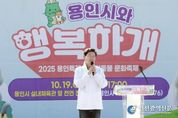 [인천광역신문] 관리자 기자 | 이상일 용인특례시장은 19일 처인구 마평동의 ‘SERI PAK with 용인’ 앞 천연잔디광장에서 열린 ‘2025 용인시와 행복하개’ 축제에 참석해 반려동물 가족과 함께 소통하는 시간을 가졌다. 이번 행사는 반려동물과 시민들이 함께 어울리며 공존할 수 있는 문화를 확산하고, 유기동물 입양을 장려하기 위해 마련됐다. 이날 행사장에는 가족 단위 시민과 반려인 등 5000여 명이 방문해 축제 분위기를 함께 즐겼다. 이상일 시장은 인사말에서 “시는 매년 반려동물과 함께하는 축제를 열며 반려문화 확산과 동물복지 향상을 위해 꾸준히 노력하고 있다”며 “지난해까지 시청 광장에서 열렸던 행사를 올해는 더 좋은 환경에서 시민과 반려동물들이 축제를 즐길 수 있도록 이곳 천연잔디광장으로 옮겨 개최했다”고 말했다. 이 시장은 “용인 시민 110만명 중 25만여 명이 15만 반려동물과 함께하고 있다”며 “앞으로도 반려동물 복지증진과 시민 인식개선을 위한 정책을 지속적으로 추진해 나가겠다. 화창한 가을 날씨 속에서 반려동물과 함께 즐거운 추억 많이 남기시길 바란다”고 했다. 이