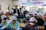 [인천광역신문] 관리자 기자 | 김영환 충북도지사는 19일 보은군에 있는 ‘일하는 밥퍼’ 작업장을 방문해 참여 봉사자들을 격려하고 소통하는 시간을 가졌다. 이번 보은 작업장(기타작업장명:보은 무료급식소)은 보은군에서 3번째로 개소한 작업장으로 60여 명의 어르신들이 참여했으며, 보은 양념채소 스마트팜에서 수확한 쪽파를 처리하는 작업을 진행했다. 이번 처리한 쪽파는 김치업체에 납품되어 양념 재료로 활용될 예정이며, 이는 과학영농의 전환으로 노동력의 효율성을 증대시키고, 지역 어르신들의 사회활동 참여 확대로 사회비용 절감을 유도하며, 나아가 생산된 농산물이 식품산업으로의 연결고리를 찾았다는 점에서 의의가 크다는 평가를 받고 있다. 특히, 충북도는 이러한 스마트팜과 충북도의 역점사업인 도시농부, 일하는 밥퍼 등과 연계를 확대 추진해 지속 가능한 민생복지 정책을 실현한다는 구상이다. 김영환 지사는 “일하는 밥퍼 사업은 전 세계적으로 유일한 어르신과 지역의 상생 프로젝트이자, 어르신들의 사회참여로 지역을 바꿀 수 있는 혁신 정책”이라고 강조하며, “과학 기술을 활용해 생산된 농산물을 일손이 부족한 농촌지역