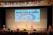 [인천광역신문] 관리자 기자 | 청양군은 30일 청양군 문화예술회관에서 10월 경로의 달을 맞아 대한노인회 청양군지회 주관으로 제29회 노인의 날 기념행사를 성대히 개최했다. 이날 행사에서는 노인복지 발전에 기여한 모범 어르신과 관계자 34명이 수상의 영예를 안았다. ▲국회의원 표창 4명 ▲도지사 표창 2명 ▲군수상 10명 ▲의장상 10명 ▲노인회 중앙회장상 2명 ▲노인회 연합회장상 1명 ▲청양군지회장상 5명 등이 전수됐다. 또한 청양에어로빅 동아리를 비롯한 6개 팀의 다채로운 축하 공연이 이어져 참석한 어르신들과 내빈들에게 즐거움과 감동을 선사했다. 김돈곤 군수는 “경로의 달을 맞아 함께 자리해주신 어르신들께 깊은 존경과 감사를 드린다”며 “앞으로도 어르신들이 행복하고 존경받는 지역사회를 만들기 위해 경로복지 증진에 최선을 다하겠다”고 밝혔다. [뉴스출처 : 충청남도청양군]