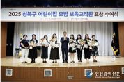 [인천광역신문] 관리자 기자 | 서울 성북구가 지난 26일 관내 어린이집에서 장기간 근무하며 보육서비스 향상과 우수 보육프로그램 개발, 보육환경 개선에 기여한 모범 보육교직원에게 표창을 수여했다. 올해 수상자는 원장, 보육교사, 조리사 등 총 77명으로, 각자의 자리에서 아이들의 안전과 건강, 교육의 질 향상에 힘써온 공로를 인정받았다. 이번 표창은 성북구가 지역 내 보육의 질을 높이고 아이들이 안정적이고 즐거운 환경에서 성장할 수 있도록 기여한 교직원을 격려하기 위해 마련됐다. 수상자들은 오랜 경력 동안 어린이집 운영과 교육, 급식 관리 등 다양한 분야에서 모범적인 활동을 이어온 점이 높게 평가됐다. 이승로 성북구청장은 인사말에서 저출생으로 인해 어려움이 가중된 보육 현장에서 묵묵히 일하는 교직원들의 노고에 존경과 깊은 감사를 표했다. 또한 앞으로도 아이들이 건강하게 성장하고 꿈을 키워 나갈 수 있도록 지속적으로 보육의 질을 높이는 데 힘써 줄 것을 당부했다. 이와 함께 구 차원에서도 교직원의 처우 개선과 보육환경 개선을 위해 다양한 지원 방안을 모색하고 추진하겠다고 밝혔다. 이번 표창 수여식은 교직원들의 사