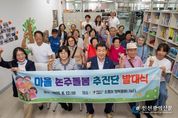 [인천광역신문] 관리자 기자 | 충북 증평군이 12일 증평송산 휴먼시아 1단지 내 초롱이행복돌봄나눔터에서 ‘마을 손주돌봄 추진단’발대식을 개최하고, 지역 주도형 아동 돌봄 모델의 본격적인 운영을 알렸다. 이날 발대식은 송산1리 주민 중 공개 모집을 통해 선발된 돌봄 추진단원 16명이 참석한 가운데 △추진단 소개 △선언문 낭독 △이재영 군수 격려사 △기념촬영 △다과 간담회 순으로 진행됐다. ‘마을 손주돌봄 추진단’은 이번 여름방학부터 초롱이 작은도서관 내 ‘행복돌봄나눔터’에서 지역 아동을 대상으로 돌봄서비스를 제공하고 있다. 특히 일부 초등학교의 방학이 2개월에 달하는 가운데, 저학년 자녀를 둔 맞벌이·한부모 가정의 돌봄 공백 해소에 큰 도움을 주고 있다는 평가다. 이미 초롱이 행복돌봄나눔터는 지난해부터 경로당 어르신들이 주축이 돼 주중은 물론 주말까지 자발적으로 아이들을 돌보는 돌봄 활동을 이어오고 있는 지역 공동체 돌봄의 우수사례로 주목받고 있다. 특히 공동주택 내 작은도서관을 활용한 돌봄 모델은 여러 언론사와 연구기관의 벤치마킹 대상이 되고 있다. 이흥연 초롱이작은도서관