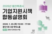 [인천광역신문] 박진 기자 | 용인특례시는 오는 20일 오후 3시 시청 에이스홀에서 ‘2026년 중소기업 지원시책 합동설명회’를 개최한다고 9일 밝혔다. 이번 설명회는 자금‧수출‧연구개발 등 다양한 중소기업 지원 정책 정보를 안내하고, 기업들이 이를 효율적으로 이용할 수 있도록 하고자 마련됐다. 시는 용인시산업진흥원과 금융지원, 기업환경 개선, 해외판로 개척, 기술지원 등 올해 지원사업 내용을 설명한다. 중소벤처기업진흥공단, 기술보증기금, 경기신용보증재단, 소상공인시장진흥공단 등 4개 기관은 기업 운용에 도움이 되는 자금과 금융 지원책을 소개한다. 경기도경제과학진흥원, 경기테크노파크, 경기지방중소벤처기업청 등 3개 기관은 해외시장 판로 개척, 연구개발(R&D) 지원사업 등을 설명한다. 설명회 후엔 이들 기관과 별도 부스에서 기업인과 맞춤형 상담도 할 예정이다. 참여를 원하면 오는 20일까지 시 홈페이지나 용인기업지원시스템을 통해 신청하면 된다. 당일 현장 신청도 가능하다. 자세한 사항은 용인기업지원시스템 용인시소식을 참고하거나 용인시 기업지원과로 문의하면 된다.