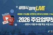 [인천광역신문] 박진 기자 | 광명시가 2026년 시정 운영 방향과 주요 사업 추진계획을 시민에게 투명하게 공개한다. 시는 오는 12일과 14일 열리는 주요업무보고회를 광명시 공식 유튜브 채널에서 생중계한다고 9일 밝혔다. 주요업무보고회는 한 해 동안의 시정 운영 방향과 실행계획을 확인하고 점검하는 자리로, 2026년 광명시가 중점적으로 추진할 핵심 사업과 부서별 세부 실행계획을 공유하는 회의다. 이번 보고회에는 시장과 부시장을 비롯해 국·과장이 직접 참석해 신규 사업과 주요 현안을 보고하고, 정책 추진 방향을 설명한다. 민선8기 시정 성과를 바탕으로 도시 성장, 민생 안정, 복지 강화, 안전한 도시 조성 등 시민 삶의 질을 높이기 위한 정책 방향과 함께, 국민주권정부의 국정과제와의 연계 방안도 심도 있게 논의할 예정이다. 회의는 12일 오전 9시와 오후 2시, 14일 오전 10시 등 총 3회 중계된다. 12일 오전에는 안전건설교통국, 신도시개발국, 도시주택국, 친환경사업본부가 보고하며, 같은 날 오후에는 사회복지국, 보건소, 자치행정국, 출자·출연기관이 참여한다. &nbs