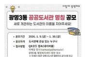 [인천광역신문] 박진 기자 | 광명시가 광명3동 새 도서관의 이름을 지어줄 주인공을 찾는다. 시는 올해 10월 개관 예정인 ‘광명3동 공공도서관’ 명칭 공모를 9일부터 30일까지 22일간 진행한다고 9일 밝혔다. 광명3동 공공도서관은 광명3동 공공복합청사(광명동 104-9) 내 지상 5~6층에 연면적 1천600㎡ 규모로 조성ᅟᅡᆫ다. 어린이·종합 자료실을 비롯해 실감 놀이터, 어린이 창작공간, 강의실, 동아리실 등 전 세대가 함께 이용할 수 있는 복합문화공간으로 운영할 예정이다. 이번 명칭 공모는 도서관이 시민의 일상과 가장 가까운 생활 문화공간으로 자리 잡을 수 있도록, 공간의 성격과 가치를 잘 담아내면서도 모두에게 친숙한 이름을 찾기 위해 마련했다. 명칭의 적합성, 창의성, 대중성 등을 종합적으로 평가해 최우수상 1건(10만 원), 우수상 1건(7만 원), 장려상 1건(5만 원)을 선정하고, 온누리상품권으로 시상할 계획이다. 선정 결과는 오는 2월 중 광명시도서관 누리집에서 공개한다. 명칭 공모는 도서관에 관심 있는 누구나 참여할 수 있다. 온라인 양식을 작성해 제출하거나, 광명3동