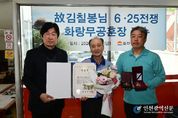 [인천광역신문] 최예준 기자 | 김천시는 2026년 4월 27일, 故김칠봉님의 유족에게 화랑무공훈장을 전수하는 뜻깊은 행사를 개최했다. 故김칠봉님은 6.25전쟁 당시의 공로로 무공훈장 수여가 결정됐으나, 전쟁 중 혼란으로 당시에는 교부받지 못해 지금에야 유족들이 대리수여받게 됐다. 이번 전수식은 국가를 위해 헌신한 고인의 업적을 기리고 감사의 뜻을 전하기 위해 마련됐다. 유가족들은 뒤늦게나마 고인의 희생을 기리고 기념할 수 있는 무공훈장을 받게 된 것에 큰 기쁨과 감사의 마음을 전했다. 임재춘 복지정책과장은 “비록 오랜 시간이 흘렀지만, 고인의 숭고한 희생을 기억하고 가슴에 새기겠다. 오늘 이 자리에서 그 뜻을 유족분들께 전할 수 있어 매우 뜻깊다.”라고 했다. [뉴스출처 : 경상북도김천시]