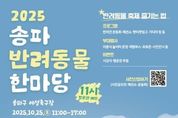 [인천광역신문] 최훈 기자 | 서울 동물보호의 날(10월 4일)을 맞아 서울 송파구가 오는 25일 토요일 11시부터 17시까지 송파구여성축구장에서 ‘2025 송파 반려동물 한마당’을 개최한다고 알렸다. 구는 점차 증가하는 반려 가구의 니즈를 충족하고, 성숙한 펫티켓 문화 정착을 위해 이번 축제를 마련했다. ▲각종 대회부터 ▲체험 부스 ▲반려견놀이터 등 반려동물과 온종일 즐길만한 이벤트가 풍성하다. 특히, 올해는 송파구여성축구장(올림픽로 474)으로 장소를 옮겨 푸른 인조 잔디 위 한층 넓고 쾌적한 환경에서 행사를 진행한다. 우선, ▲반려동물이 주인공이 되는 이색 이벤트가 연이어 개최된다. 메인무대에서는 △반려동물과의 추억이 담긴 사진공모전 시상식 △반려견과 보호자 개성을 뽐내는 반려견 패션쇼 △반려견과 함께 빙고판을 완성하는 펫티켓 빙고 등이 운영된다. 개회식에 앞서 △오전 11시에는 현장 참가자들에게 행운권을 배부하고 별도 추첨을 통해 푸짐한 경품을 증정할 예정이다. 또한, 운동장에서는 귀여운 반려견들과 뛰놀며 즐겁고 특별한 추억을 쌓을 수 있다. △50m 장애물 달리기 대회인 ‘펫티