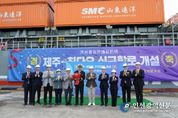 [인천광역신문] 관리자 기자 | 제주항에 57년 만에 첫 국제 정기 컨테이너선이 입항했다. 물류비는 62% 절감되고 운송 시간은 최소 2일로 단축돼 제주 기업들의 수출입 경쟁력이 크게 높아질 전망이다. 제주특별자치도는 18일 오후 2시 제주항 국제여객터미널에서 ‘제주–칭다오 정기 컨테이너선 첫 입항식’을 열고 제주 해상물류의 새 시대 개막을 선언했다. 첫 입항 선박 ‘SMC 르자오’호에는 페트칩, 기계장비 등 약 40TEU의 수입 화물이 실렸으며, 제주에서는 수산물 가공품, 삼다수 등 10TEU 규모의 제품이 중국으로 수출된다. 이번 항로 개설은 1968년 제주항이 무역항으로 지정된 이후 57년 만의 첫 정기 국제항로 개설로, 제주가 글로벌 물류 거점으로 도약하는 역사적 이정표가 됐다. 해양수산부가 지난 7월 말 항로 개설을 승인하고, 8월 운영선사를 확정한 뒤 10월 초 운항계획 신고 절차를 마치면서 본격 운항에 들어갔다. 오는 22일부터는 매주 수요일 오전 정기적으로 제주항에 입항할 예정이다. 이날 입항식에는 오영훈 제주도지사를 비롯해 이상봉 제주도의회 의장, 도내 CIQ(세관․출입