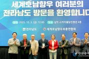 [인천광역신문] 관리자 기자 | 세계 각국에 거주하는 호남 향우들이 글로벌 고향사랑 실천에 앞장서고 있다. 세계호남향우회 총연합회(회장 이기자)는 3일 ‘2025 세계 호남인의 날’을 기념해 전 세계 회원 250여 명과 함께 전남을 방문, 고향사랑기부금 3천만 원을 전달했다. 이번 기부는 이기자 총연합회장, 김원봉 제2대 회장, 이동수 3대 회장, 김영윤 4대 회장, 김점배 아프리카중동한인회 총연합회장, 손재민 중국호남향우회총연합회 4·5대 회장, 김용덕 동경호남향우회 11대 회장 등 주요 임원들의 참여로 이뤄졌다. 이기자 총연합회장은 “고향에 대한 그리움과 깊은 애정을 담아 기부금을 마련했다”며 “고향 발전에 보탬이 돼 기쁘고, 언제나 전남 발전을 응원한다”고 말했다. 김영록 전남도지사는 “향우들께서 해외에서도 호남인의 긍지를 지키면서 고향 발전을 위해 지속해서 힘을 보태주고, 전남에 어려움이 있을 때마다 앞장서준 것에 깊은 감사의 뜻을 전한다”며 “고향을 향한 각별한 관심과 성원에 보답하도록 최선을 다하겠다”고 말했다. 세계호남향우회총연합회는 2013년 창설돼 27개 나라 75개 지