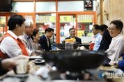 [인천광역신문] 관리자 기자 | 추석연휴 첫날인 3일 김동연 경기도지사가 파주 문산자유시장을 찾아 통큰세일 지원 확대와 문산자유시장-DMZ 지역 평화 관광 홍보 강화를 약속했다. 이번 방문은 민족 대명절을 앞두고 도민 장바구니 물가를 안정시키고, 경기침체로 어려움을 겪는 소상공인과 전통시장 상인들에게 힘을 보태기 위한 차원에서 마련됐다. 김동연 지사는 지역 상인들과 오찬 간담회를 갖고 경기침체와 소비 위축 등으로 어려움을 겪고 있는 현장의 목소리를 직접 들었다. 상인들은 경기 살리기 통큰세일 행사 시 전통시장 상권별 지원액 상향과 문산자유시장-DMZ 지역 평화 관광 홍보를 요청했다. 이에 김동연 지사는 “경기도는 9월 추경을 통해 20억 원을 추가 확보, 하반기 총 52억 원 규모로 통큰세일을 진행할 예정”이라며 “통큰세일 기간 많은 도민께서 전통시장을 찾을 수 있도록 다각적이고 전방위적인 홍보를 실시하겠다”고 말했다. 이어 “경기관광공사를 통해 문산자유시장-DMZ 지역 평화 관광 홍보를 확대하고 디엠지 오픈(DMZ OPEN) 스포츠 행사와 캠프그리브스, 도라산 평화공원 안내소 등에 홍