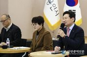 [인천광역신문] 관리자 기자 | 이상일 용인특례시장은 11일 오후 시장실에서 용인FC 공식 서포터즈인 ‘용비어천가’와 용인FC의 K리그2 홈 개막전 준비 상황을 공유하며 소통의 시간을 가졌다고 밝혔다. 이날 이상일 시장은 ‘시민과 함께 성장하는 구단’이라는 비전에 따라 용비어천가 운영진 5명과 소통하며 현장의 목소리를 청취했다. 이 시장은 “구단주이지만 전문가가 아니기에 응원과 지원만 할 뿐 용인FC 선수단 구성에 간섭하지 않겠다고 했고, 단 한 명의 선수도 추천하지 않는 등 제가 한 말을 지켰다”라며 “언론에서 선수단 구성이 잘 됐다고 분석하며 ‘다크호스’로 평가하는 만큼 3월 1일 열릴 홈 개막전이 기대된다”라고 했다. 이 시장은 “시즌 개막을 앞두고 서포터즈 여러분과 직접 만나 준비 상황을 공유하고 현장의 이야기를 들을 수 있어 매우 뜻깊은 시간이었다”라며 “K리그2에서 용인FC가 돌풍을 일으킬 수 있도록 용비어천가의 뜨거운 응원과 지속적인 관심을 부탁한다”라고 했다. 이날 용비어천가는 삼가역-미르스타디움 특화 거리 조성과 홈 경기 조아용 팝업 스토어 설치 등을 요청했다. 이 시장