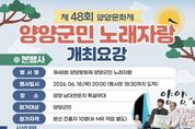[인천광역신문] 최예준 기자 | 전통과 현대가 어우러지는 양양군 최대 향토 축제인 ‘제48회 양양문화제’의 화려한 서막을 알리는 ‘양양군민 노래자랑’이 오는 6월 18일 오후 8시, 양양 남대천 둔치 특설무대에서 개최된다. 양양문화원은 군민들이 숨겨진 끼와 재능을 마음껏 발산하고, 축제의 열기를 최고조로 끌어올릴 주인공을 찾기 위해 참가자 모집에 나선다고 밝혔다. 참가 신청은 오는 5월 4일부터 5월 15일까지 12일간 진행된다. 접수는 오전 10시부터 오후 5시까지이며, 양양문화원 또는 각 읍·면 사무소를 방문해 신청하면 된다. 참가 자격은 양양군에 주소를 둔 주민 및 주둔 군인, 관내 사업장을 둔 사업자 또는 직장인(재직증명서 등 증빙 제출)이라면 누구나 가능하다. 다만, 대회의 공정성을 위해 노래강사, 가수 자격증 소지자, 가수협회 가입자 및 최근 3년간 본 대회 대상 수상자는 참가가 제한된다. 본선 무대에 설 최종 10명을 선발하는 예심은 5월 31일 양양군문화복지회관 공연장에서 열리며, 당일 접수 순서에 따라 심사가 진행될 예정이다. 특히 이번 노래자