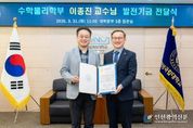 [인천광역신문] 관리자 기자 | 경상국립대학교는 3월 31일 오전 11시 대학본부 3층 접견실에서 자연과학대학 수학물리학부 이종진 교수의 대학발전기금 전달식을 개최했다. 이종진 교수는 이날 대학 발전을 위해 1000만 원을 기탁했다. 이로써 이 교수의 총 기부 금액은 1250만 원에 달한다. 이날 행사에는 경상국립대학교 권진회 총장, 이병현 연구부총장, 김경수 국제협력부처장, 황정숙 국제협력과장 등 대학 관계자와 기부자인 이종진 교수, 김영순 자연과학대학장 등이 참석해 자리를 빛냈다. 이종진 교수는 2004년 서울대학교에서 물리학 박사학위를 취득한 후, 삼성전자 반도체사업부와 GIST, KAIST 연구교수를 거쳐 2014년 경상국립대학교 교수로 임용됐다. 특히 2024년부터 2025년까지 자연과학대학장을 역임하며 단과대학의 발전에 헌신했다. 이번 기탁은 이 교수가 학장 재임 시절 느꼈던 단과대학 차원의 유연한 예산 확보 필요성을 몸소 실천에 옮겼다는 점에서 의미가 깊다. 기부금은 자연과학대학의 행정 수요 및 교육 환경 개선을 위해 사용될 예정이다.