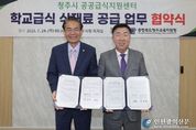 [인천광역신문] 관리자 기자 | 청주시와 충청북도청주교육지원청(이하 청주교육지원청)이 지역 먹거리 순환과 안전한 학교급식 체계 구축을 위해 손을 잡았다. 청주시는 24일 임시청사 직지실에서 청주교육지원청과 ‘공공급식지원센터를 통한 학교급식 식재료 공급 업무협약’을 체결했다. 협약식에는 이범석 청주시장과 박종원 청주교육지원청 교육장 등이 참석했다. 양 기관은 학생의 건강 증진과 먹거리 복지실현을 위해 지역에서 생산된 안전하고 우수한 식재료를 학교급식에 안정적으로 공급하는데 협력하기로 했다. 시는 지역 농축산물의 체계적인 생산관리와 안전성 확보에 힘쓰기로 했으며, 청주교육지원청은 학교에서 공공급식지원센터를 통해 지역 식재료를 사용하는데 적극 협력하기로 했다. 또한 양 기관은 학생들을 대상으로 한 올바른 식습관 교육과 공공 먹거리 지원 체계 구축을 위한 협력사업도 발굴해 추진하기로 했다. 이범석 청주시장은 “이번 협약은 지역 농산물 소비를 확대하고 성장기 학생들에게 더 건강한 급식을 제공하는 실질적인 첫걸음”이라며 “교육지원청과의 긴밀한 협력을 통해 청주만의 지속가능한 공공급식 모델을 만들어