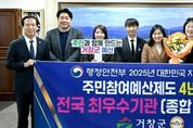 [인천광역신문] 관리자 기자 | 거창군은 지난 16일 정부세종청사에서 행정안전부가 주최하는 2025년 대한민국 지방재정대상 시상식에서 주민참여예산제도 운영 4년 연속 전국 최우수기관으로 선정되어 장관 기관표창과 함께 재정 인센티브 5천만 원을 받았다. 행정안전부는 매년 전국 지방자치단체 243개를 대상으로 주민참여예산제도 성과평가를 통해 지자체의 건전한 재정 운용과 지방재정 민주성책임성투명성 평가해 광역·시· 군·구 별로 각 1개씩 총 4개 기관만을 최우수기관으로 선정하고 있다. 거창군은 2018년, 2021년 우수기관에 선정된 데 이어, 2022년부터 2025년까지 4년 연속 최우수기관으로 선정되는 성과를 거뒀으며, 이는 전국 군 단위 82개 지자체 가운데 최상위 수준의 운영 역량을 입증한 것이다. 특히 올해는 ‘공감과 성장-진화하는 거창형 주민참여예산’이라는 슬로건 아래, △찾아가는 주민 예산학교 미래세대(초 · 중 · 고 · 대학생) 확대 운영으로 미래세대의 참여 환경 조성 △‘모방과 경연’을 주제로 거창군만의 차별화된 제안사업 공모유형을 다양화해 창의적 행정문화 확산 △회의 진행보조자(퍼실리테이터)