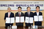 [인천광역신문] 관리자 기자 | 충청북도교육청은 23일 오후, 한국가스안전공사 회의실에서 한국가스안전공사, 한국고용정보원, 한국교육개발원 등 충북혁신도시로 이전한 3개 공공기관과 업무협약을 체결했다고 밝혔다. 이날 협약식에는 윤건영 교육감, 박경국 한국가스안전공사 사장, 이창수 한국고용정보원 원장, 고영선 한국교육개발원 원장이 참석했다. 협약을 통해 ▲충북 도내 학생들의 충북혁신도시 공공기관 견학 ▲학생체육 활성화를 위한 체육시설 활용 협력 ▲진로 및 진학 활동 지원 등 다양한 분야에서 상호 협력을 약속했다. 아울러, 올바른 인성과 미래역량 향상을 위한 다양한 교육활동과 협력이 필요하다고 인정되는 사항에 대해서도 긴밀한 연계를 추진할 예정으로, 이번 협약을 통해 공공기관과의 교육협력을 강화하고, 지역사회와 함께하는 미래교육 기반을 더욱 견고히 할 방침이다. 이 중 한국교육과정평가원과 업무협약에는 강연 및 연구 인력 교류, 지역연계 교육 개발 및 운영 등의 내용이 추가로 담길 예정이다. 윤건영 교육감은 “오늘 협약을 통해 학교와 학교 밖 전문기관의 자원이 교육에 연결되는 좋은 출발점이 될
