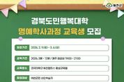 [인천광역신문] 관리자 기자 | 예천군은 군민 누구나 배움을 통해 성장하는 ‘평생학습도시 예천’ 구현을 위해 오는 3월 6일까지 ‘2026년 경북도민행복대학 예천캠퍼스 명예 학사 과정’ 새내기 교육생을 모집한다. 2021년도부터 시작해 올해 6기를 맞는 경북도민행복대학은 체계적이고 수준 높은 학습을 통한 주민의식 함양과 지역민의 역량 개발을 통한 지역 경쟁력 제고를 위해, 경상북도와 예천군, 국립경국대학교 예천캠퍼스가 추진하는 관‧학 협력 평생학습 사업이다. 이번 교육과정은 명예학사 60+마스터 과정으로 운영되며, 경북학, 시민학, 미래학 등 공통교육과 인문·사회경제·생활환경·문화예술 분야의 특화교육을 포함한 총 7개 영역으로 구성된다. 또한, 학습동아리와 학생자치활동, 지역사회 참여 프로그램 등 다양한 비교과 활동을 함께 마련해 학습 효과와 공동체 참여를 높일 계획이다. 교육은 상반기 3월 17일부터 6월 30일까지, 하반기 8월 25일부터 12월 1일까지 각각 15주씩 운영되며, 매주 화요일 저녁 7시에 진행된다. 수료자에게는 명예 도민 학사 학위가 수여되며, 우수 학습자에게는 별도
